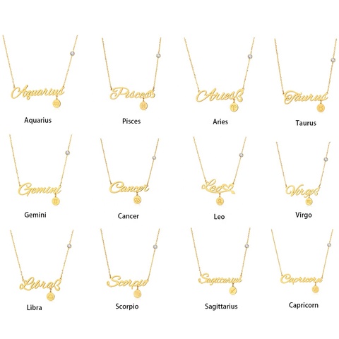 Hợp Thời Trang Thép Không Gỉ Mạ Vàng Dấu Hiệu Hoàng Đạo Mặt Dây Chuyền Vòng Cổ Cho Phụ Nữ Constell Tử Vi Thiết Kế Với Zircon Cho Các Bên